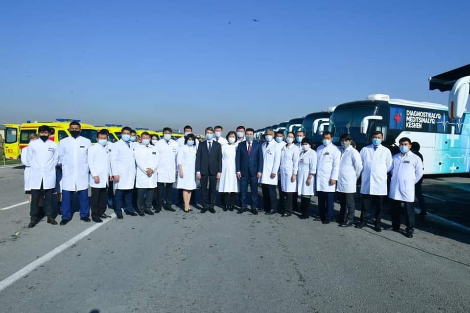 В рамках мероприятий по борьбе с распространением коронавирусной инфекции обновляется материально-техническая база учреждений здравоохранения Туркестанской области. Сегодня отдаленные села области пополнились 12 передвижными медицинскими комплексами, а парк станции скорой помощи 13 реанимобилями. В торжественном мероприятии принял участие глава региона Умирзак Шукеев, который поблагодарил медицинских работников за самоотверженный труд.